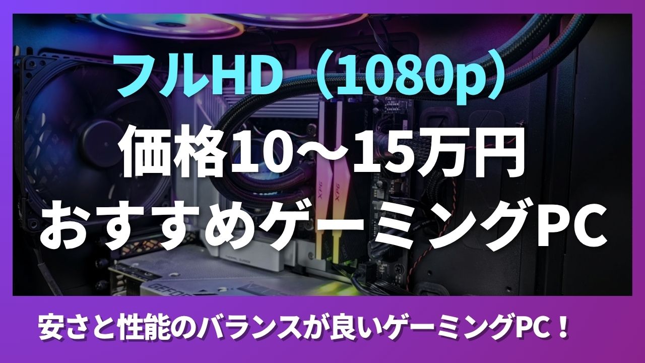 10万円台前半では、フルHD(1920×1080)でのプレイを快適にするスペックが主流です。多くの人気タイトルはこのクラスで十分に遊ぶことができます。